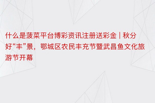 什么是菠菜平台博彩资讯注册送彩金 | 秋分好“丰”景,鄂城区农民丰充节暨武昌鱼文化旅游节开幕